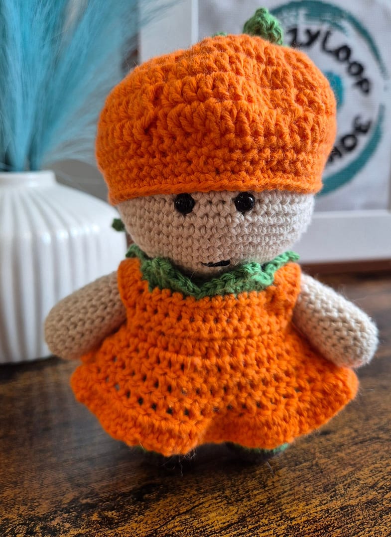 Lalka zrobiona na szydełku.
