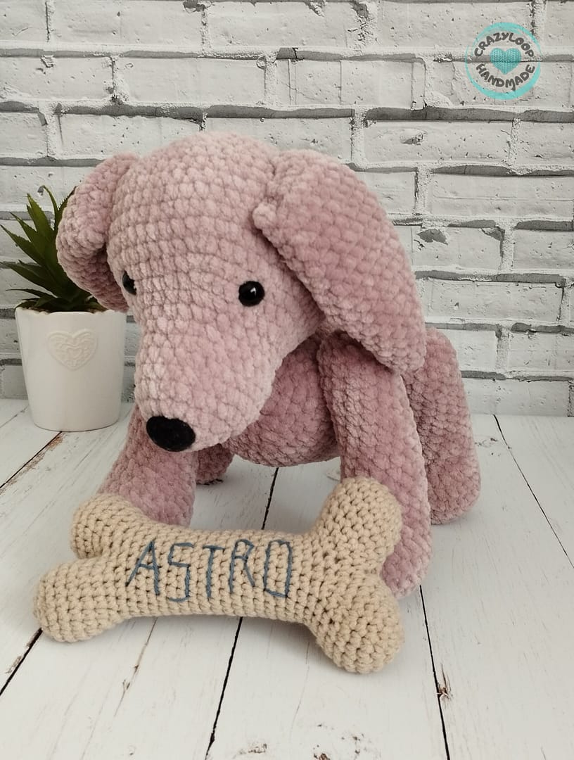 Piesek zrobiony na szydełku.