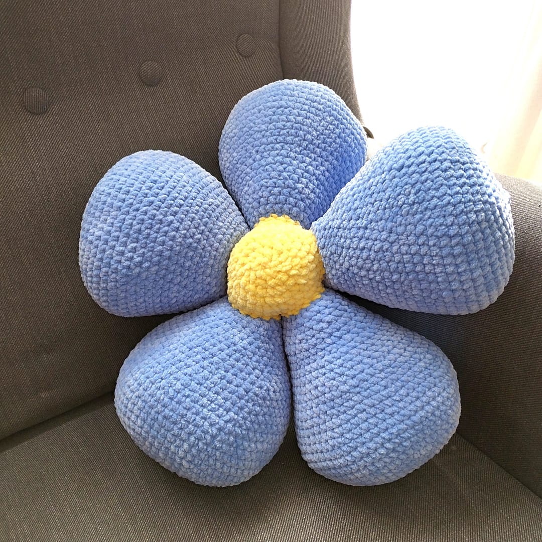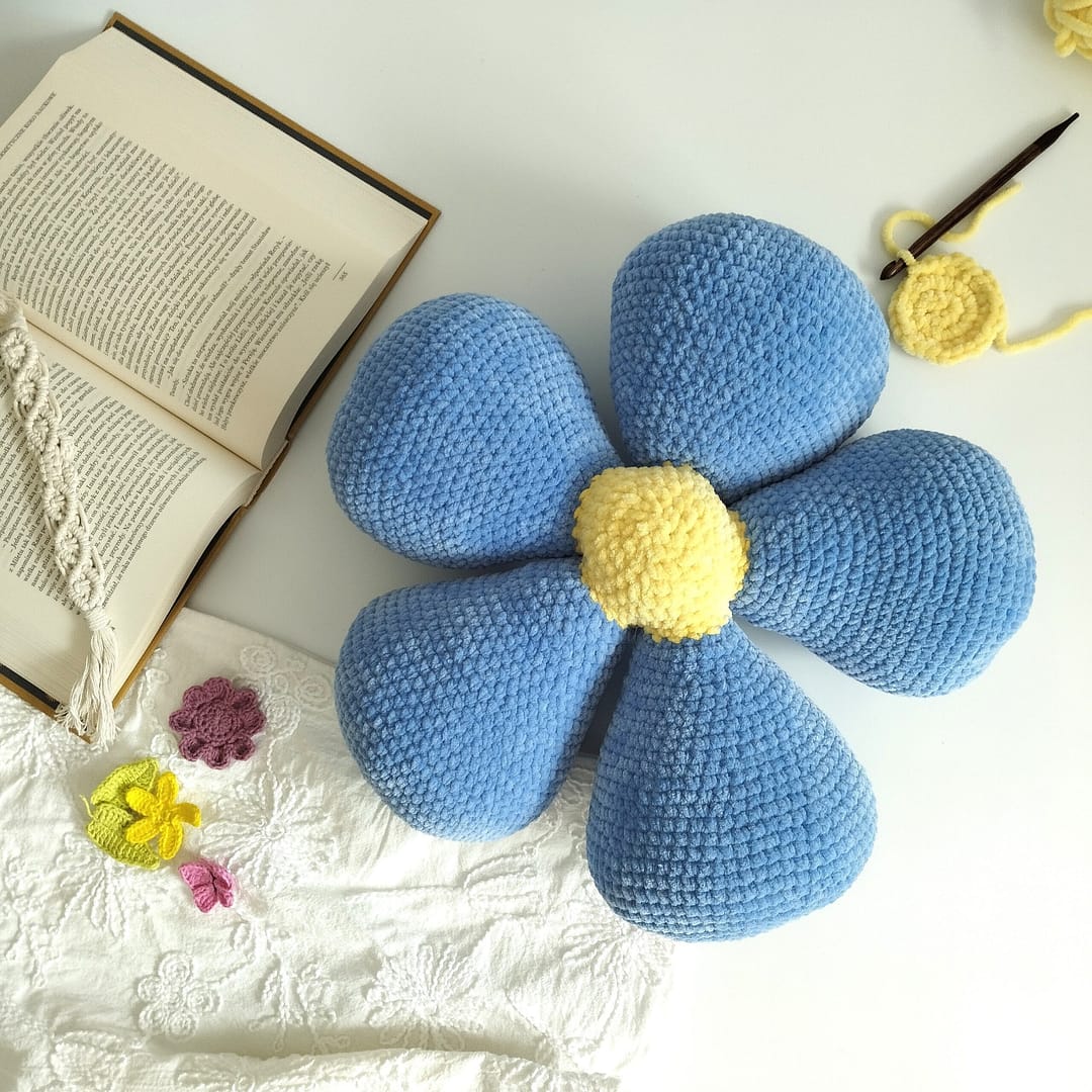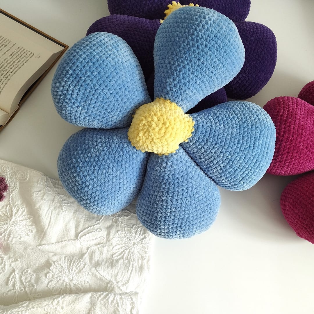 Poduszka kwiatuszek zrobiona ręcznie na szydełku niebieska