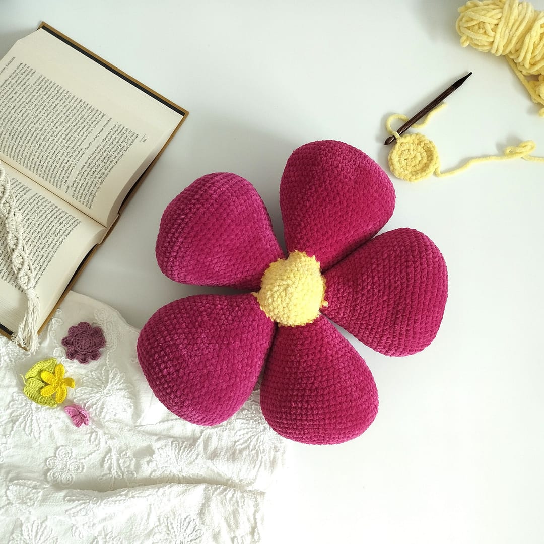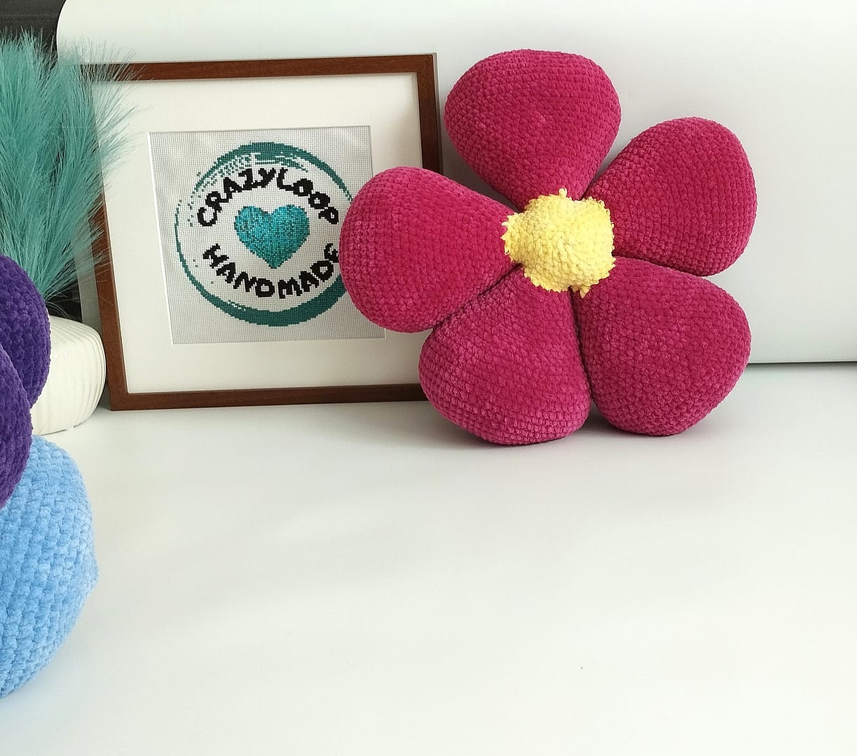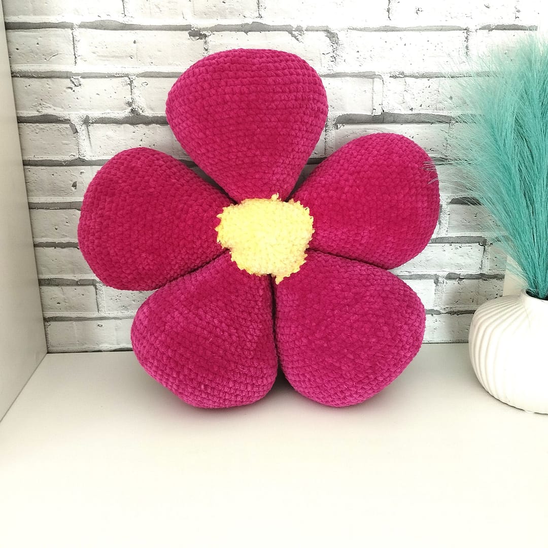 Poduszka kwiatuszek zrobiona ręcznie na szydełku różowa