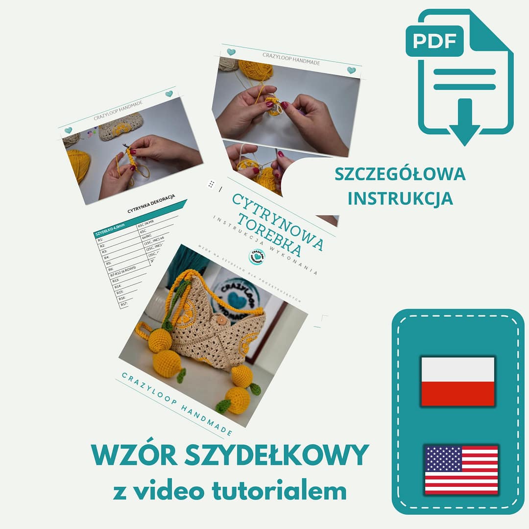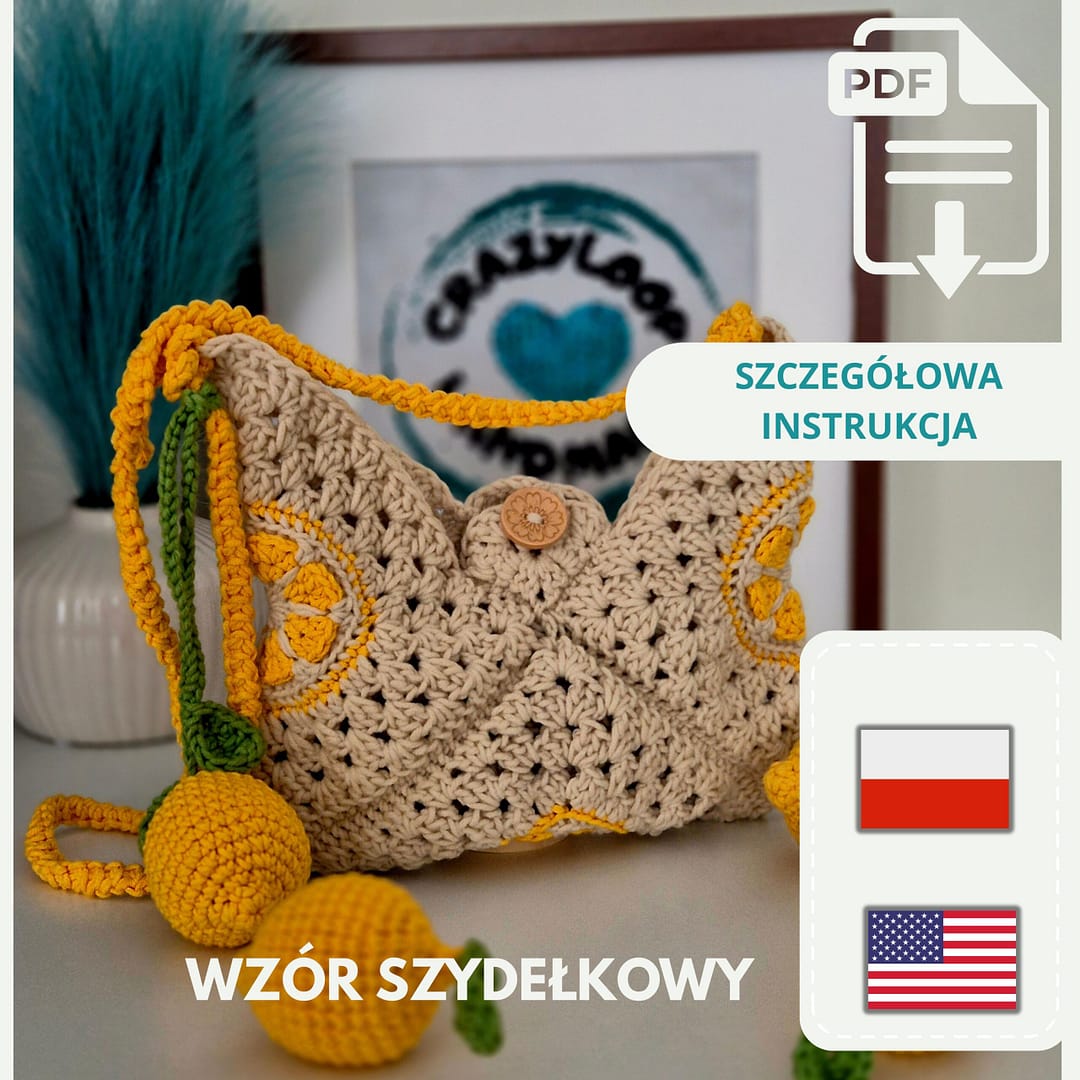 Wzór szydełowy PDF Cytrynowa torebka z video tutorialem