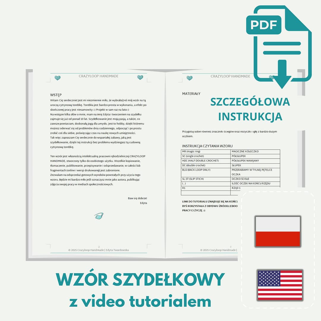 Po zakupie otrzymasz natychmiastowy dostęp do pliku, dzięki czemu możesz zacząć dziergać od razu – bez czekania na wysyłkę.