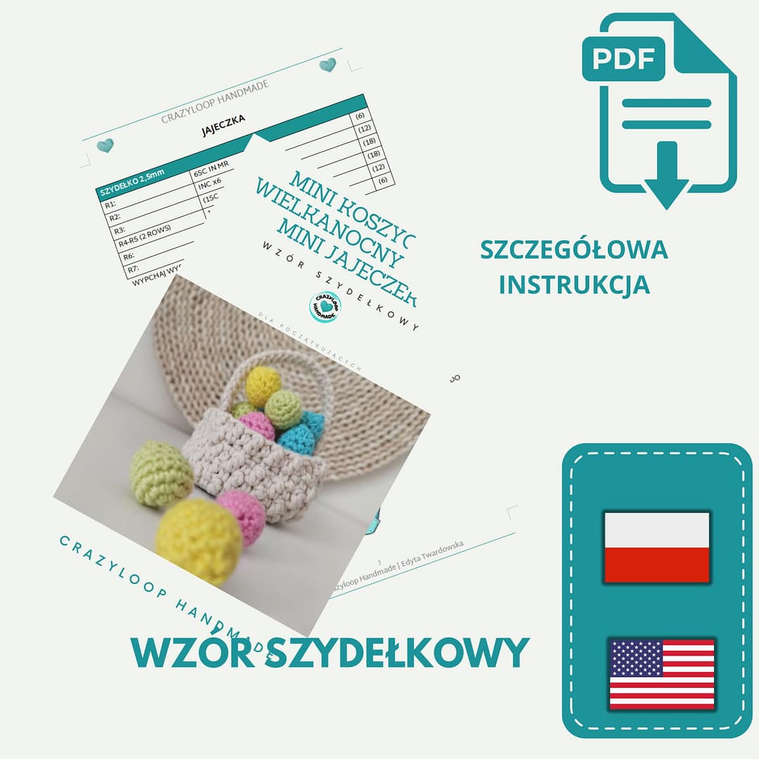 Wzór szydełkowy PDF Mini koszyczek Wielkanocny