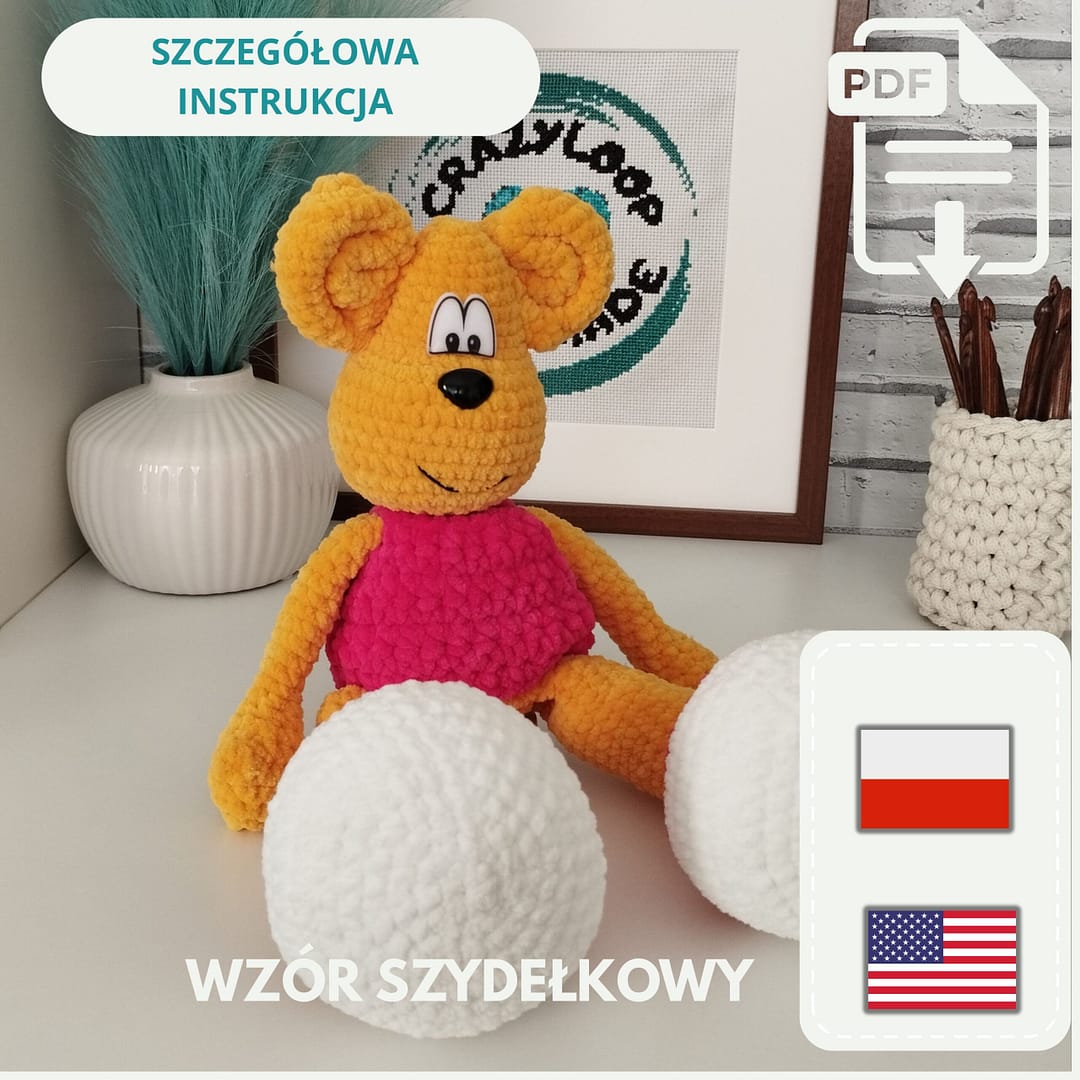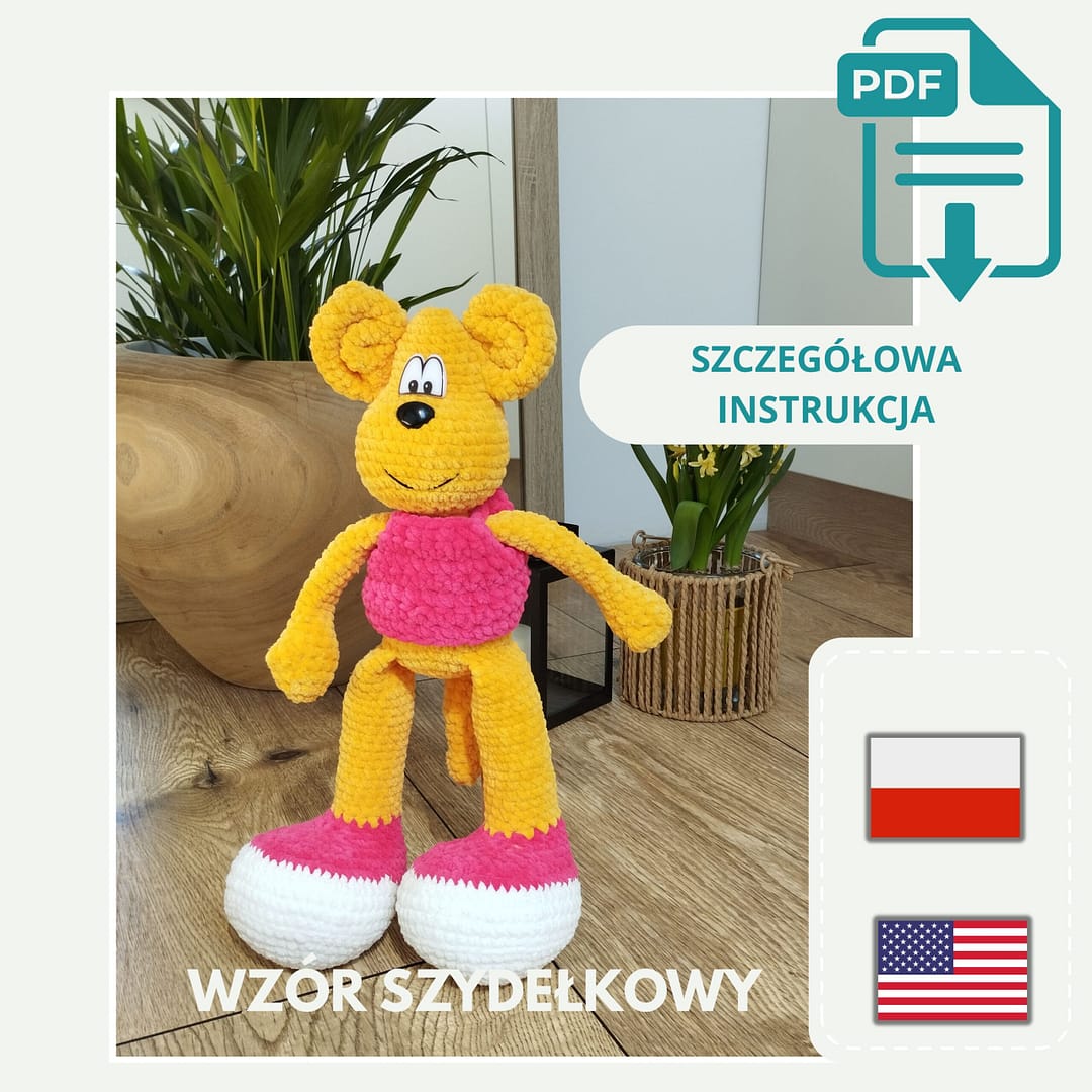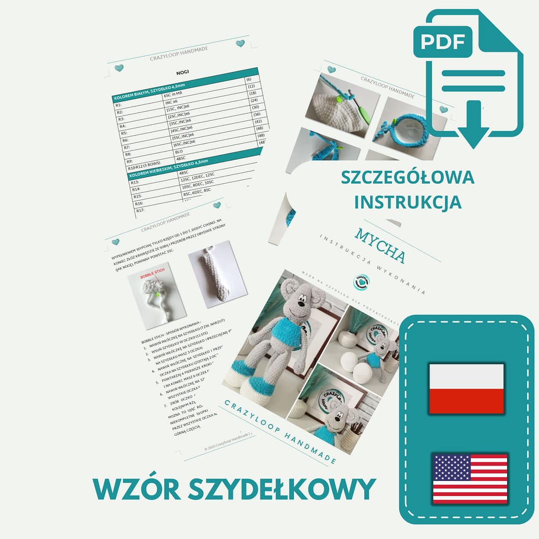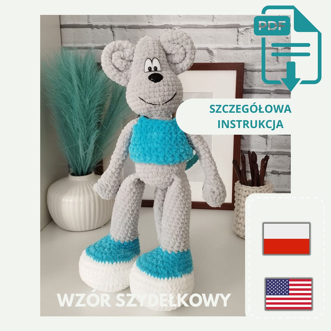 Wzór w formacie PDF, napisany w bardzo przystępny sposób, zawiera wskazówki jak, krok po kroku, wykonać myszkę na szydełku. Dodatkowo szczegółowe zdjęcia opisujące poszczególne kroki wykonania.