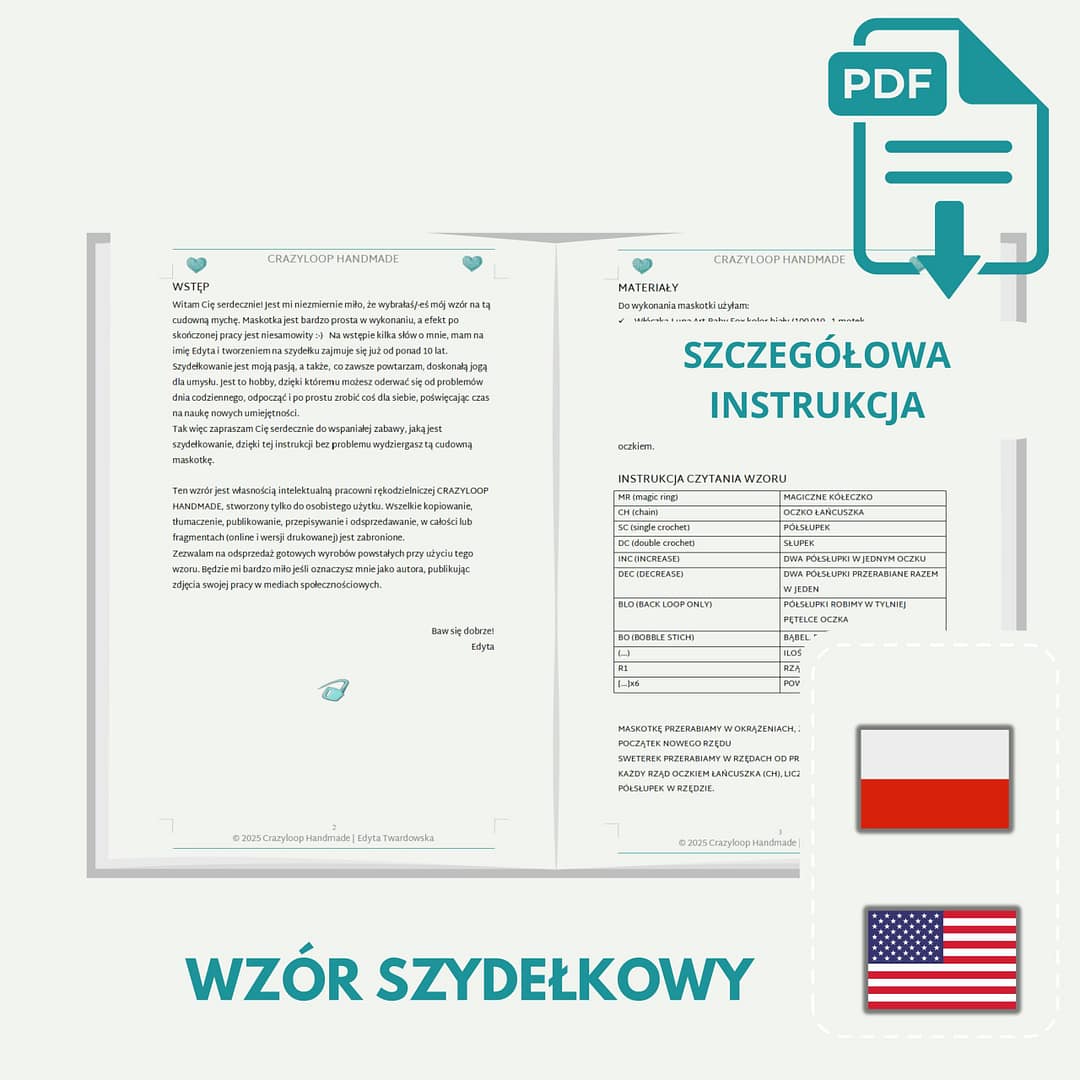Po zakupie otrzymasz natychmiastowy dostęp do pliku, dzięki czemu możesz zacząć dziergać od razu – bez czekania na wysyłkę.
