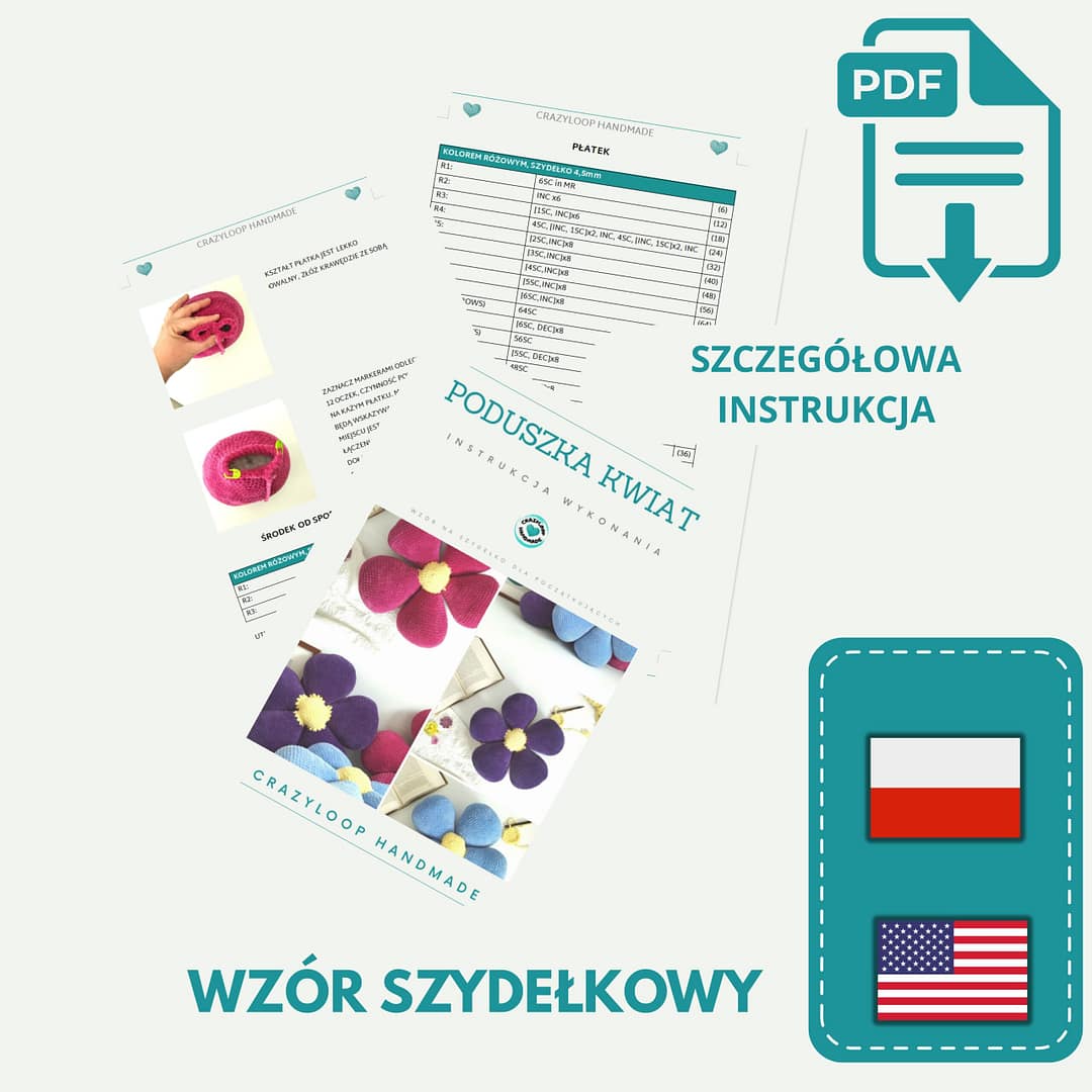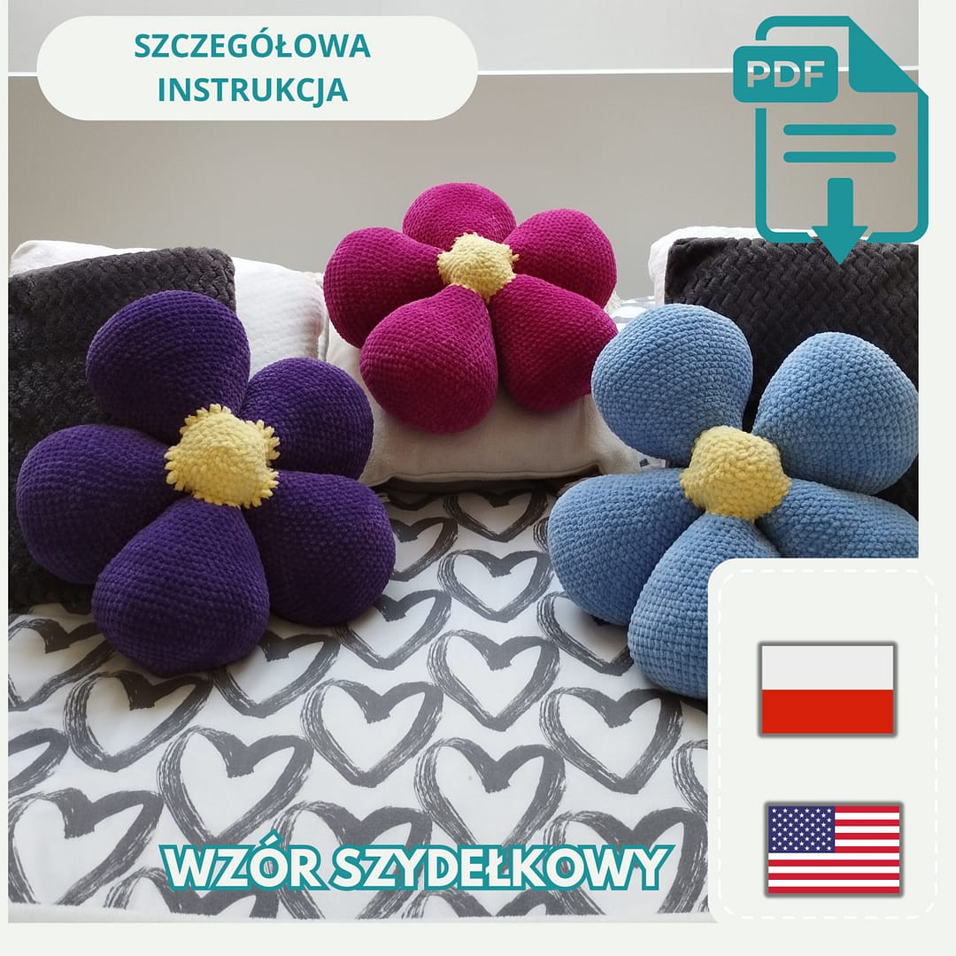Wzór szydełkowy PDF Poduszka kwiatuszek