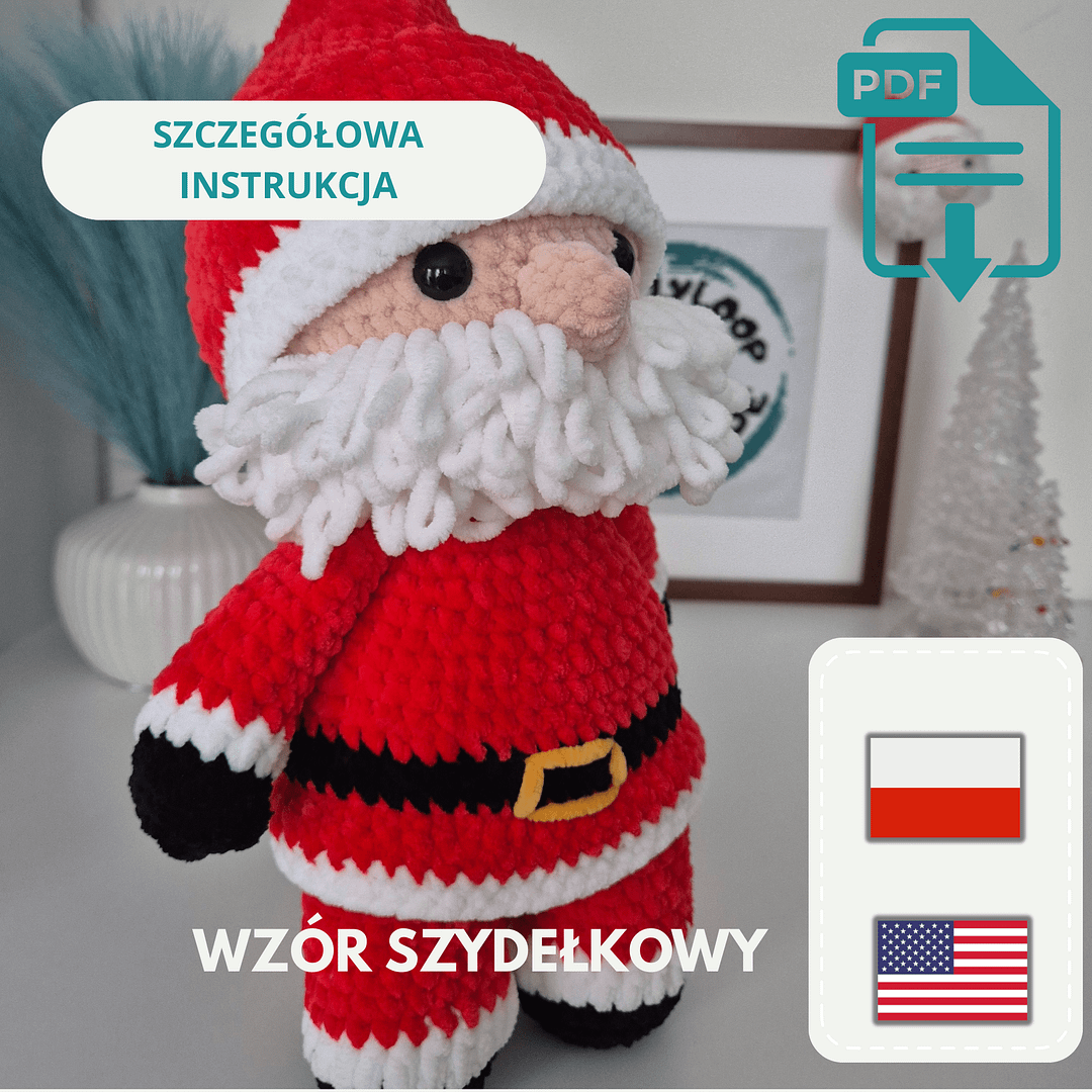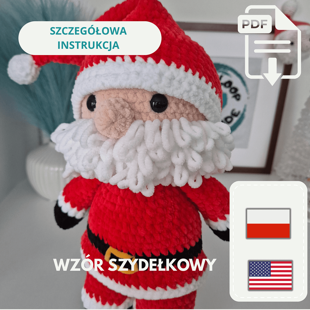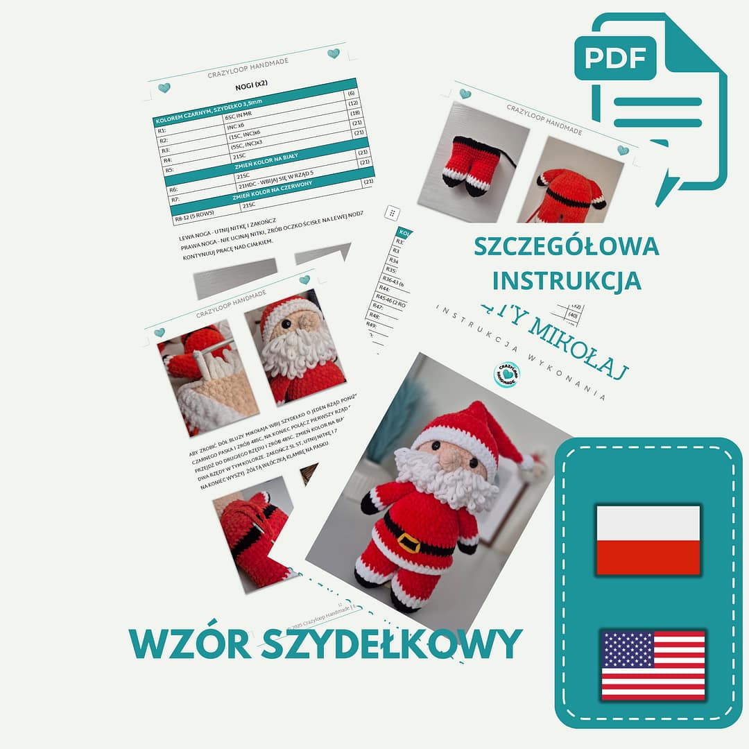 Wzór w formacie PDF, napisany w bardzo przystępny sposób, zawiera wskazówki jak, krok po kroku, wykonać na szydełku Świętego Mikołaja. Dodatkowo szczegółowe zdjęcia opisujące poszczególne kroki wykonania. A wszystko to znajdziesz na 14 stronach dokładnej instrukcji PDF.