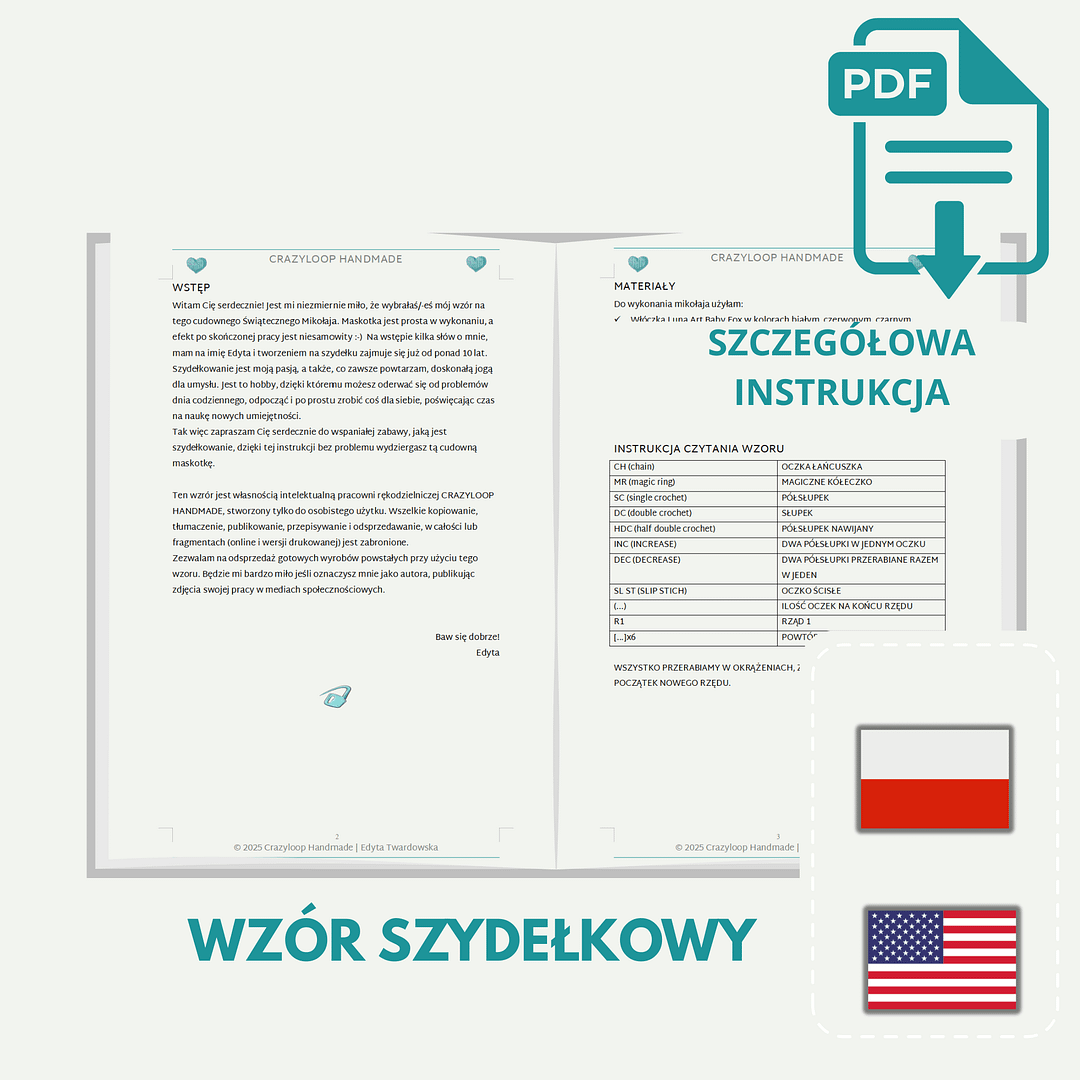Po zakupie otrzymasz natychmiastowy dostęp do pliku, dzięki czemu możesz zacząć dziergać od razu – bez czekania na wysyłkę.